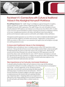 Phase One of the anpBC Strategy was structured around four research projects exploring how a culturally grounded, healthy and robust workforce could be created. These projects were carried out from 2012 to 2014. The four different topic areas were: culture and traditional values in the workplace; workplace wellness and balance; mentorship and professional development; and pensions and benefits. These research projects were powerful and informative, yielding a number of recommendations and suggested activities to guide the next steps of the Strategy.